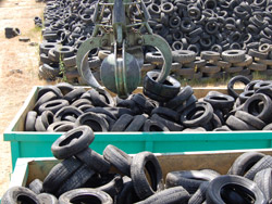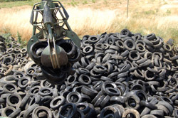 Nous trions les pneumatiques par catégorie et qualité car les sources de valorisations finales sont différentes suivant les produits trouvés. 80% du trie s'effectue sous forme de grappage (manipulation répétée avec une pelle mécanique équipée d'un grappin).