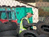 Lors du vidage des bennes sur notre site une équipe de tri intervient, sélectionne les carcasses pneumatiques (environs 20 %) les compte et les tri selon leur marque,